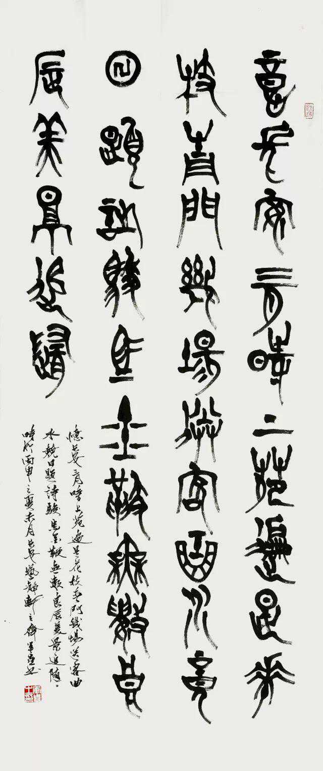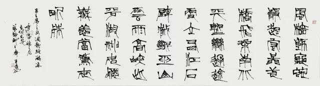 齐军喜坚守着自己篆书领域的训练不停止。没有出生名门与书香门第,没有接受过书法篆刻专业的培训。齐军喜剩余的仅仅是后天的勤奋与自学。坚韧不拔又自觉坚守。冬练三九,夏练三伏。十年磨一棒,铁石磨成针,实为梅花香自苦寒来。我还有一个观点,我认为齐军喜在艺术征途上,穷人的孩子早当家早成才呢。