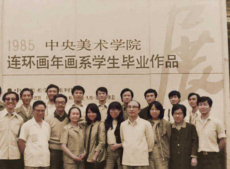 1985年中央美术学院连环画年画系毕业作品展,图中前排右四贺友直