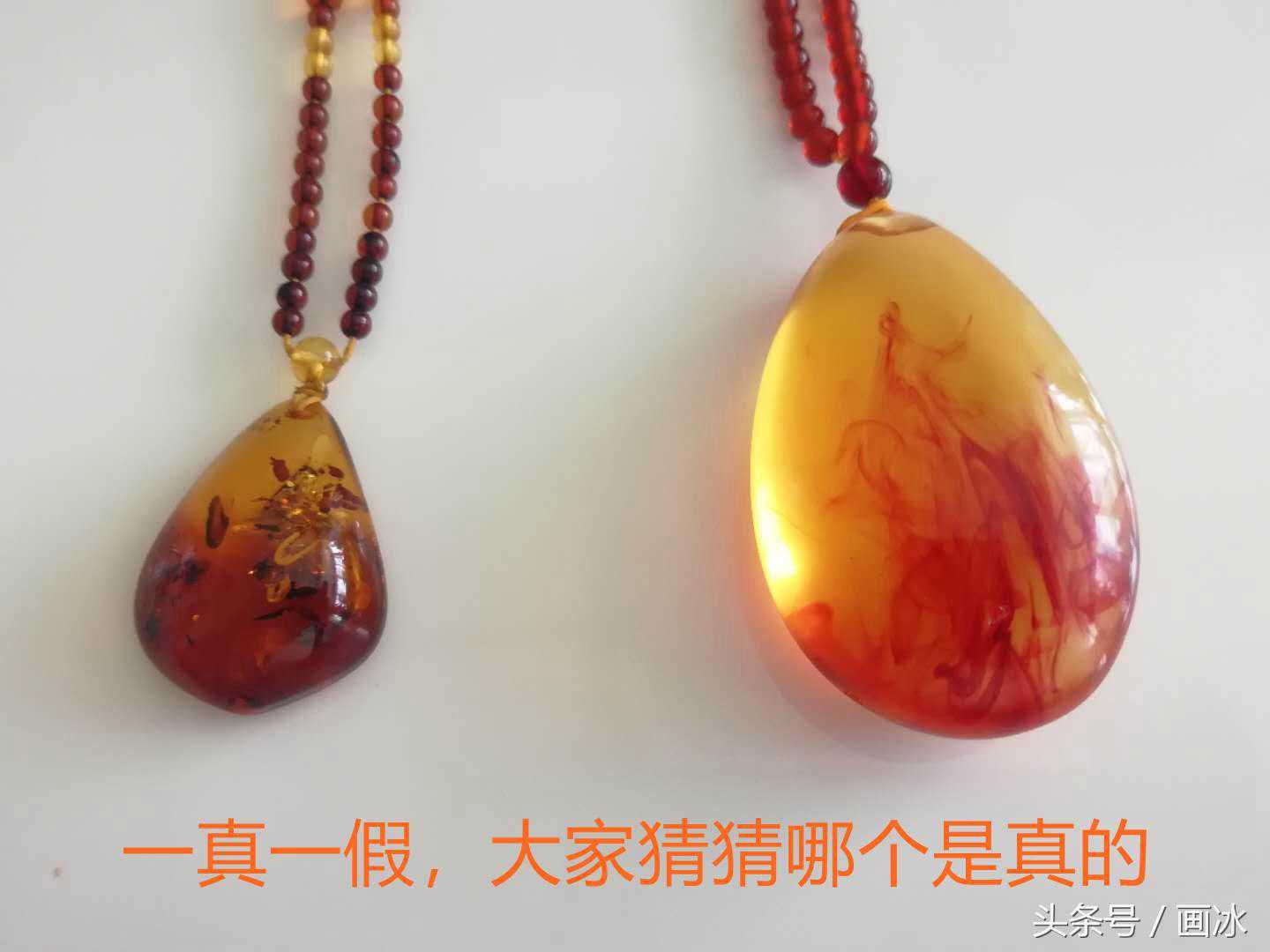 这两块琥珀都是我买的,一真一假,大家能分辨出来吗?