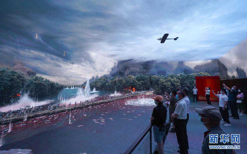 7月15日,观众在中国共产党历史展览馆“‘不忘初心、牢记使命’中国共产党历史展览”上观看飞夺泸定桥展陈。新华社记者陈晔华摄