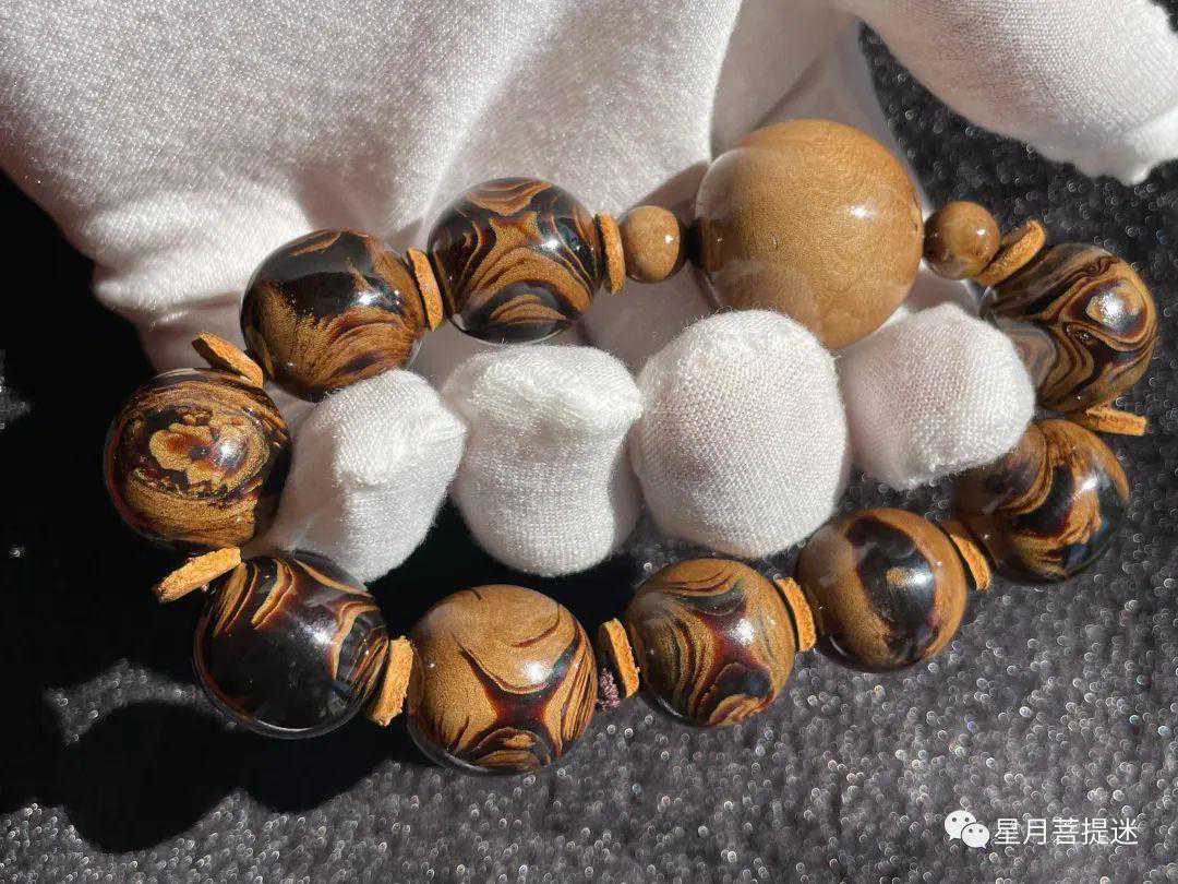 基本上整串是看不到年轮层的,就算转到孔边,特不明显的超轻微年轮层了,基本快和木头一样完美了,其实把玩收藏到3A就够了,4A很难找到一串了,要在全部妖纹整串,基本是没有什么出现。所以一切以实际为主,纵然脑子想过千百种画面,实际能够遇见好的料已经非常少,所以在整体上的要求要学会平衡