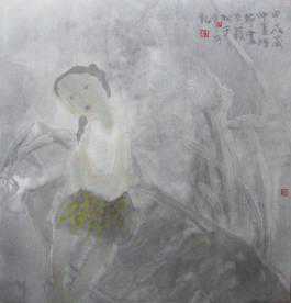 纵观于亨没骨画人物画,其主题多取材女性形象,以淡墨、淡色取面造型为主。很少用浓墨重彩。究其根源,和他的理解有关,那就是,浓,取形式精神;淡,聚雅逸气韵;他力求的是把本体的主观感受作为作品的内蕴。