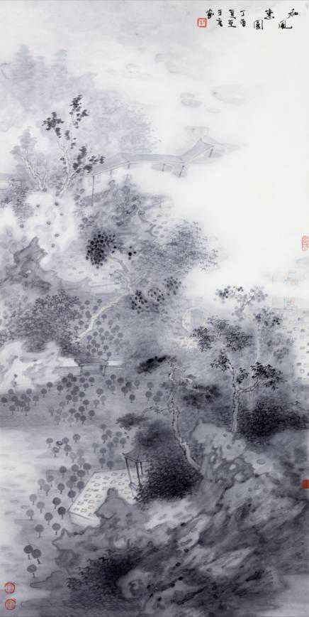 这种通过对园林元素的解读和理解,其最为大胆的表现就是“拆掉”了园林的墙围,将过去附属于个人私密性的空间完全洞开,使园林属性得以回归自然,重新成为原始造化的一部分,在似与不似的幽眇意境中,走出一条传统笔墨语言革新创造的个性化道路,用全新的水墨理念,将千百年来一个定式化的园林,推演为一个开放的园林,脱胎换骨的园林,可以无限拓展并不断生长的园林!同时也让中国山水画的理性思维得到极大滋养,创作主题得到飞跃性拓展。
