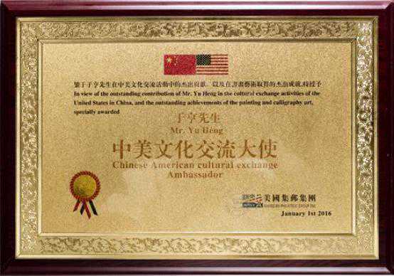 于亨被美国集邮集团授予“中美文化交流大使”称号