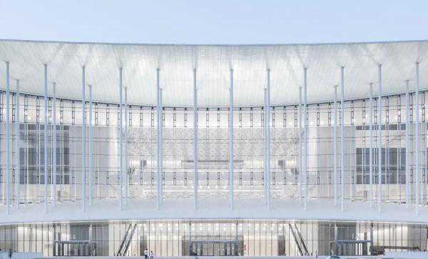 屋顶采用更加轻盈、动感的设计,金属波浪形状的屋面犹如柔软飘逸的丝绸一样覆盖展厅,体现西安作为丝路起点的城市隐喻。
