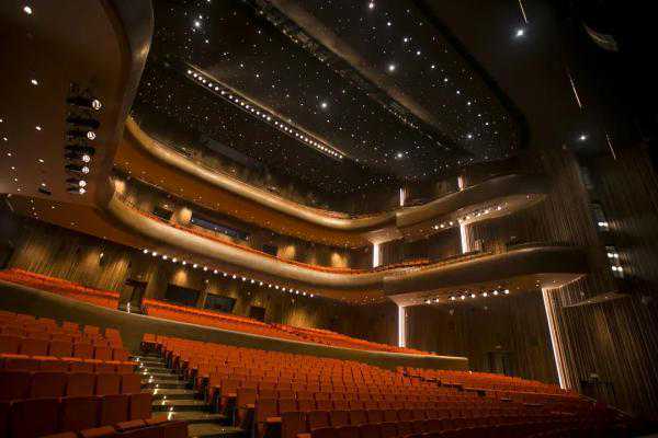 歌剧厅是陕西大剧院最重要的部分,进入歌剧厅,莲花、舟水、波光摇曳。一抹中国红点缀在月影星辰的幕布下,赋予了整个空间浓重的仪式感。