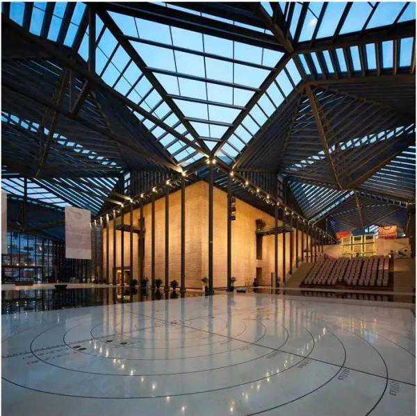 配合经过特别设计的外墙材料,从肌理、质感和气度等方面表现隋唐长安城市与建筑文化的深层结构,以及唐代西市的恢弘气势与繁华景象。