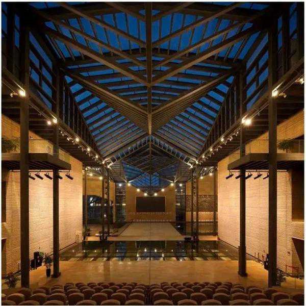 也许你曾在陕西大剧院的戏剧厅观赏过精彩演出,但是你可能并不知道,舒适的座椅还充满巧思地借鉴了唐三彩中的绿色釉彩,用色的细节与整体氛围拼贴出一种超现实的意境。