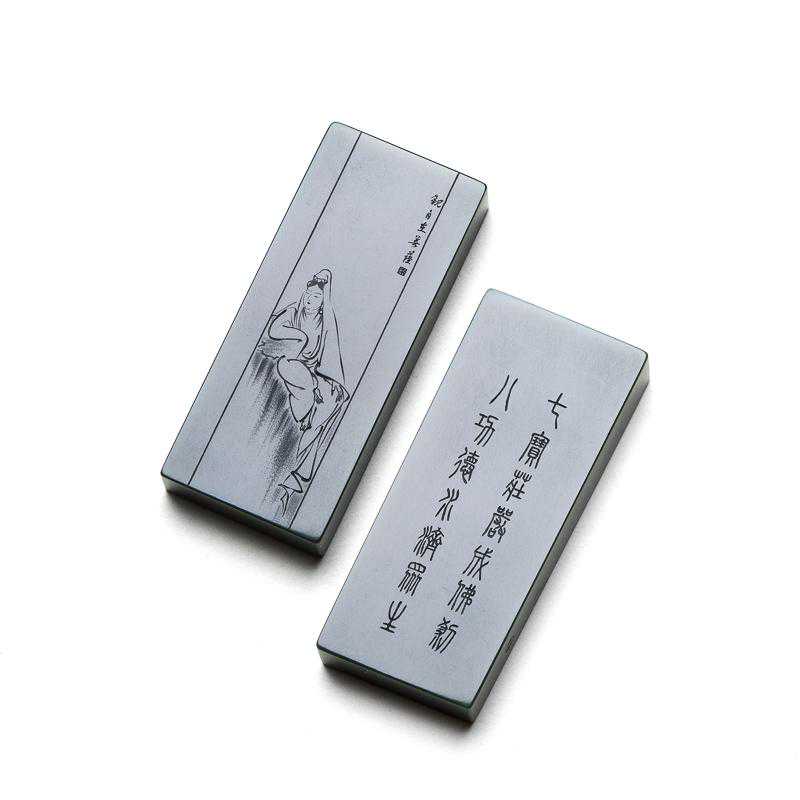 阴刻工艺是指用雕琢工具,在玉料玉器的雕刻面上刻画琢磨出凹入此雕刻面的点、线、面,从而表现出线条、字体或画面的一种雕刻工艺方法。较之阳线雕刻,阴线雕刻难度更大,讲究的是刀法笔意,走刀行云流水,线条峰回路转,既有雕琢之意,又显笔触之韵。