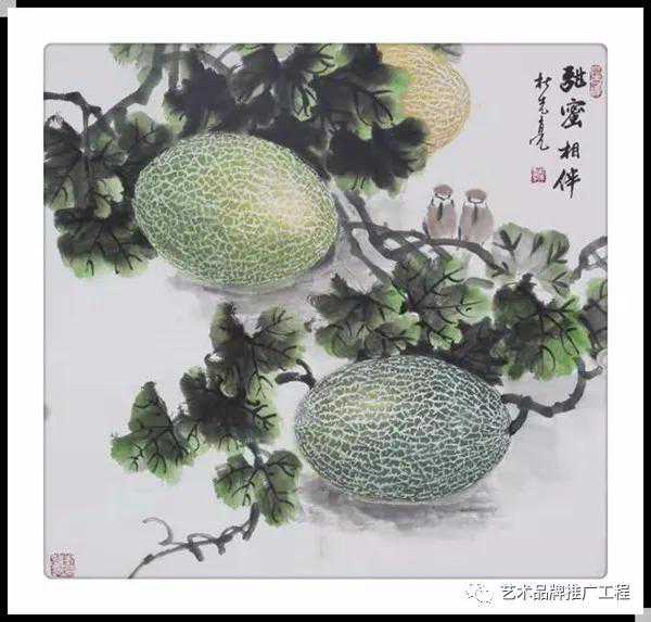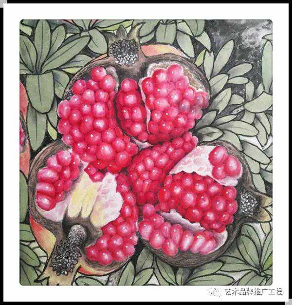 观杜先亮老师笔下的葡萄,片片绿色的叶子,洒脱飘逸,把晶莹剔透的葡萄衬托的更加诱人,密密实实,郁郁葱葱的叶子在色彩的层层叠加下,不失精致的描绘并呈现了极致的艺术效果,好的作品不止于悦目,更在赏心,杜先亮老师的葡萄,气脉贯穿于整幅之上,以形彩着色,于不工处求工,精研于彩绘,让人观之则陶然于胸,此时,让我不禁想起了“璞中美玉石般看,画里明珠煞欲穿”的优美诗句。
