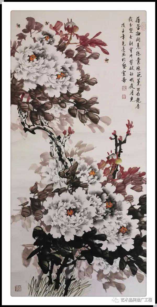 好的作品,不止于悦目,更在赏心,杜先亮老师于不工处求工,故能得工,在他的笔下,牡丹热情奔放,似在和煦的春风里吸吮着天地之气,畅汗淋漓,极具感染力,观其画面,构图饱满,干净利落,远近得宜,通篇和谐,“画品之高,根于人品”,“画以人重,艺由道崇”,总观历代中国画者,无不追求学识充实,进而完美人格,作品就是人格的体现,是主观意识的发挥,正所谓“书,如也,如其学,如其志,总之曰,如其人”,若溯源其灵性之本,则是来自于沉实不争的心境,也恰恰是这种渊源,给他在艺术追求之旅上带来无穷无尽的快乐。