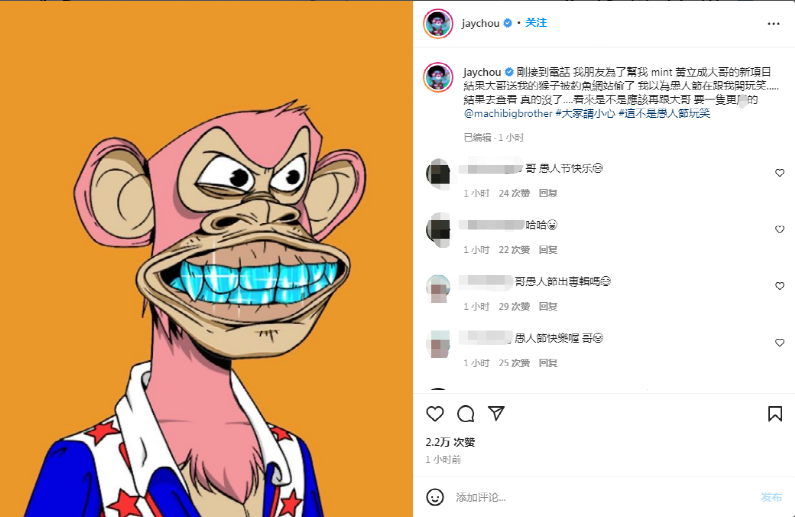 据悉,周杰伦被盗NFT属于当下圈内最火项目之一无聊猿游艇俱乐部(BAYC),按当前价格计算,该NFT价值超320万元人民币。
