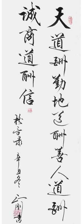 鄢正刚先生的书法之所以赋予其严肃而独特的艺术内涵,原因是多方面的。其中一点是他师承诸体书法的同时,在主观理念、意蕴、才情的驱动下,善于汲取、变通、融化、创新。在他笔下,书法的意趣与传统古法一脉相承,从博大精深的中国文化细微处体悟书法应有的蕴积和厚重,以古朴、简洁、灵动的笔法笔意,体现出灵动、清明、超逸的艺术品格;将国学思想与书法艺术融会贯通,让书法中无不蕴藏着玄妙内涵和古老碑、帖、简、卜的精髓。通过鄢正刚先生的作品,可以看出,远追魏碑墓志,深尊晋唐帖学,修得扎实艺术根基,笔法、墨法、字法、章法井然有序而又别有韵致,而且笔墨间有精神、有意蕴,处处体现出一种独特的韵味。这既保持了中国书法的力度与神韵,又营造出一种个性意味非常浓郁的水墨情境。其书体的线条、墨韵,处处都透露大雅之美,洋溢着独特的审美气息。鄢正刚先生做人处事不喜欢张扬、淡泊名利,他心中有爱,落笔含情,不单单是用娴熟的笔墨技巧表现一幅书法作品,更多是通过一幅幅令人震撼的墨韵来展现自身更具内核的精神世界。