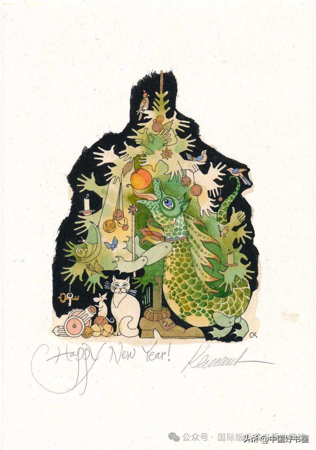 在辞旧迎新之际,国内外版画艺术家们一直都有用版画创作贺卡的传统,交换或赠予师友亲朋,致以新年祝福。