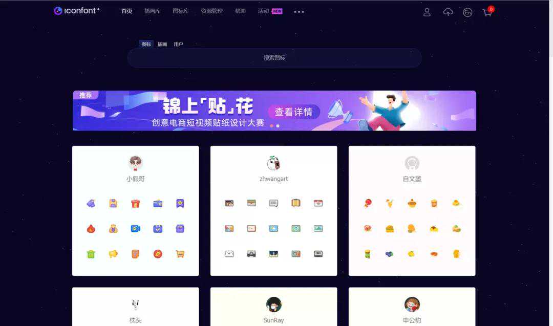 内含海量图标,支持海量搜索、模糊搜索、分类搜索,有图标集合、图标库分类。还可下载PNG\SVG格式的插画。