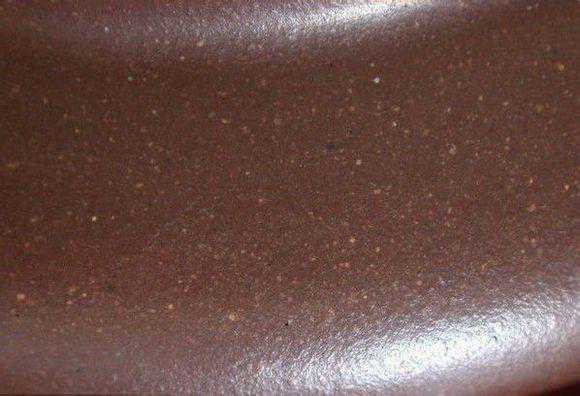 紫砂壶的色泽比较内敛,即使是比较眼的红泥、朱泥,也都是红而不妖,不会过分鲜艳。而化工大部分都是普通的陶泥加入染色剂调配而成,所以颜色达不到真正紫砂的质感,这个经常玩壶的朋友一定颇有体会。