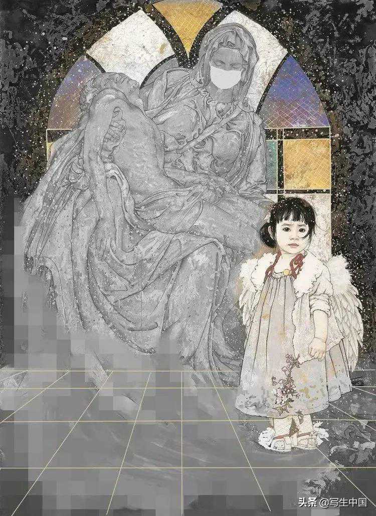 《小门神——你没戴口罩》中国画60x90cm聂鹏