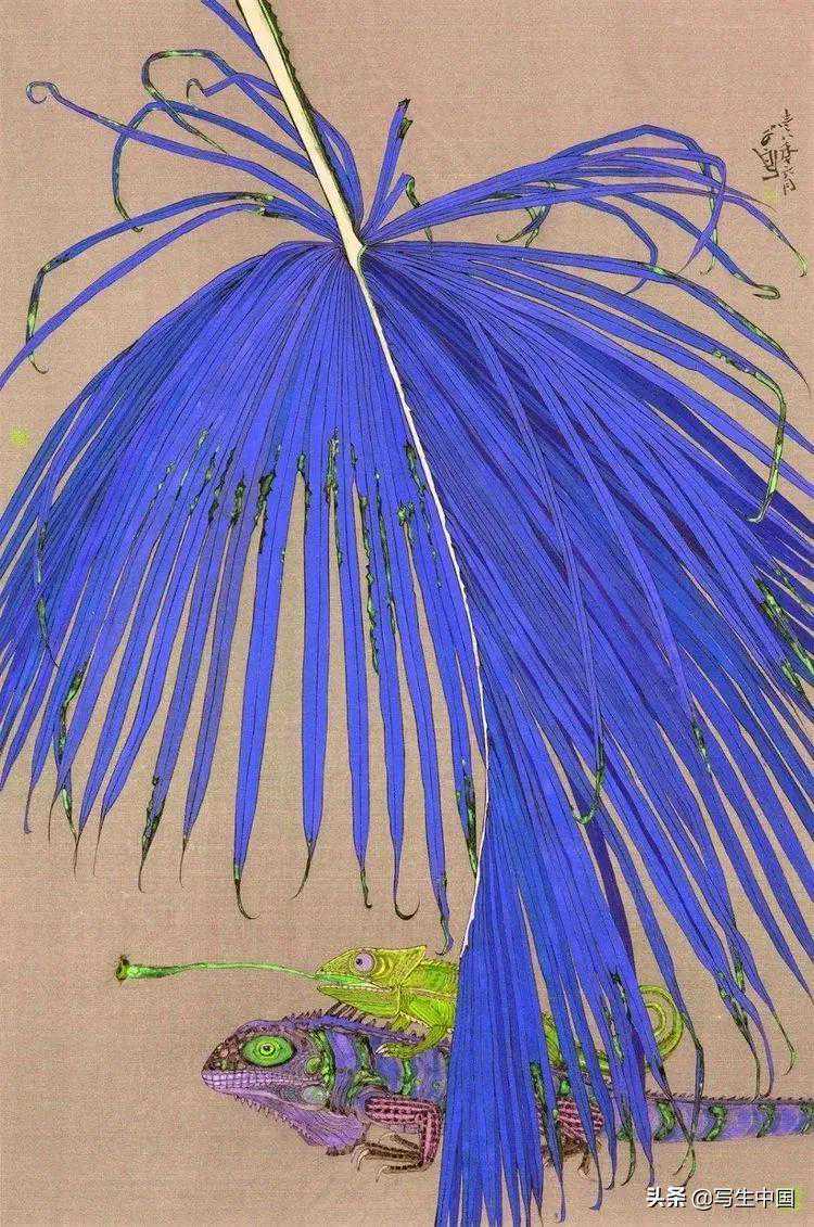 《葵叶双蜥》绢本90×62cm郭子良