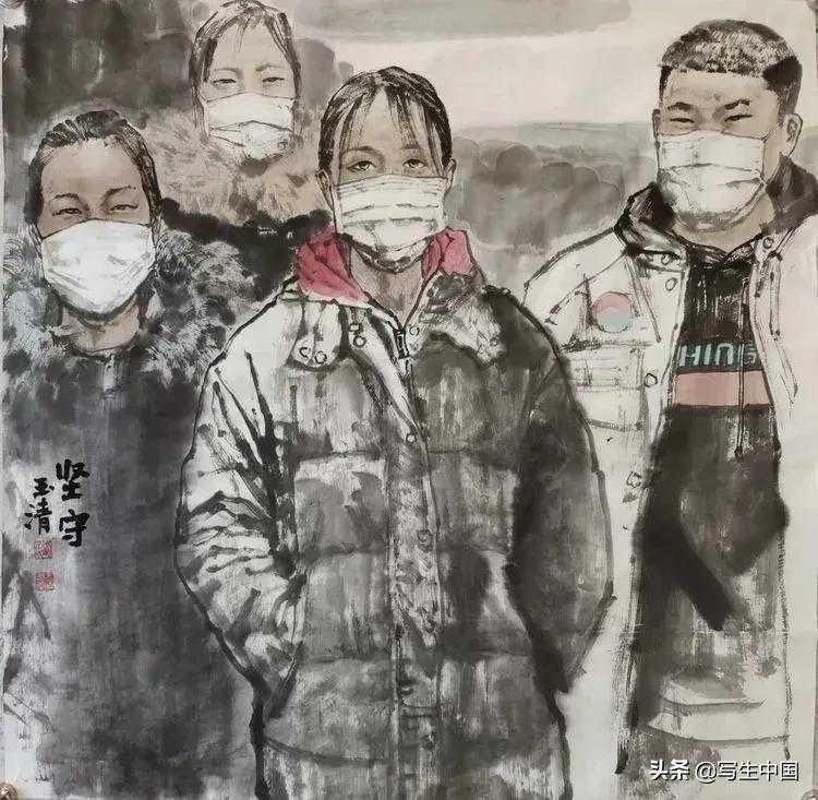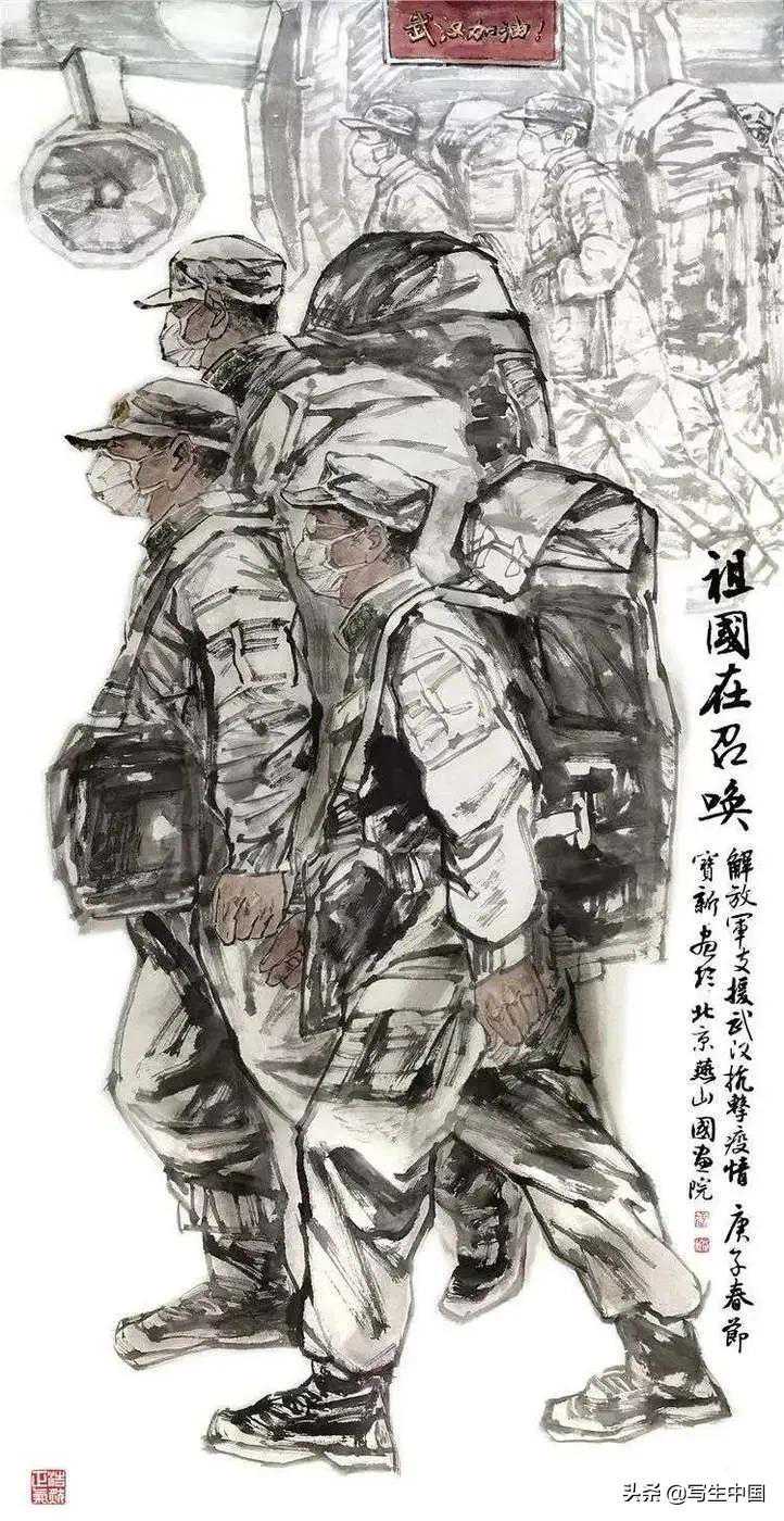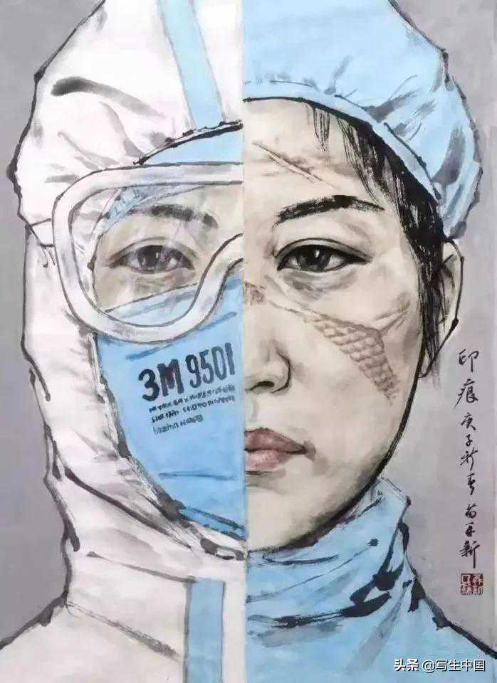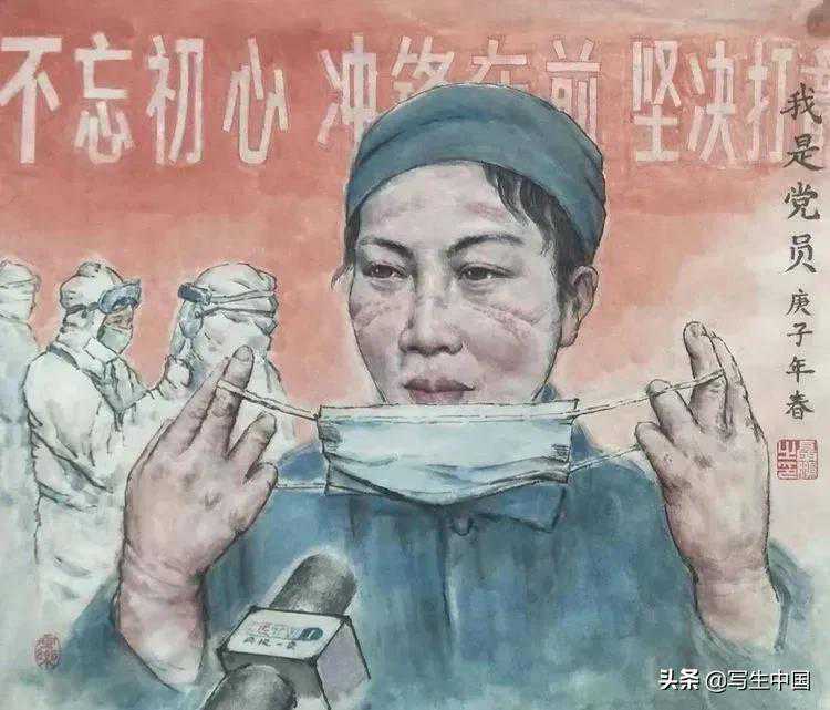 《抗疫逆行者》中国画文麒