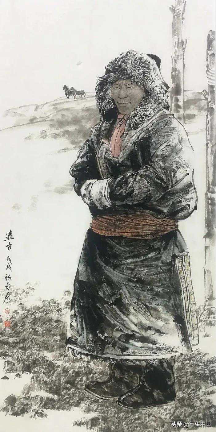 《白衣卫士》中国画四尺整张李绪贵