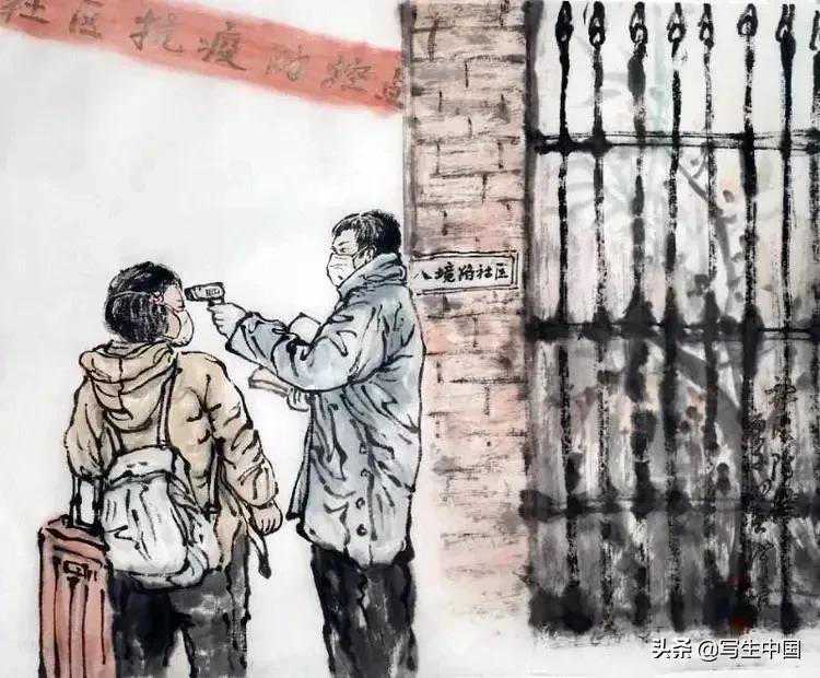 《社区防控员》中国画蒋洪亮