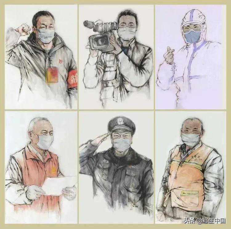 《拿画笔的抗疫战士》中国画蒋洪亮