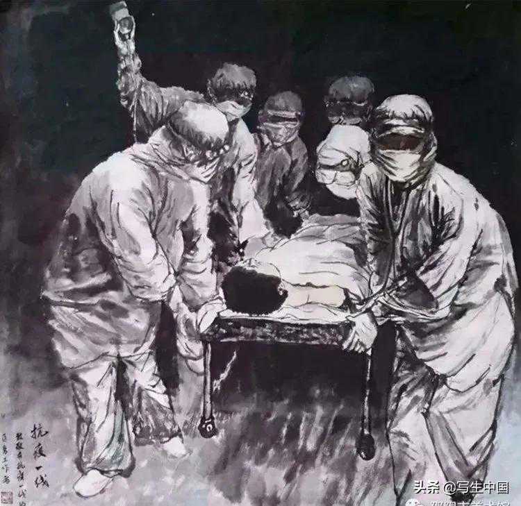 《白衣天使阻击战》国画178x137cm阎占东