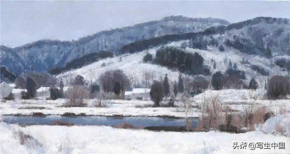 《山村晴雪》油画80×150cm沈行工