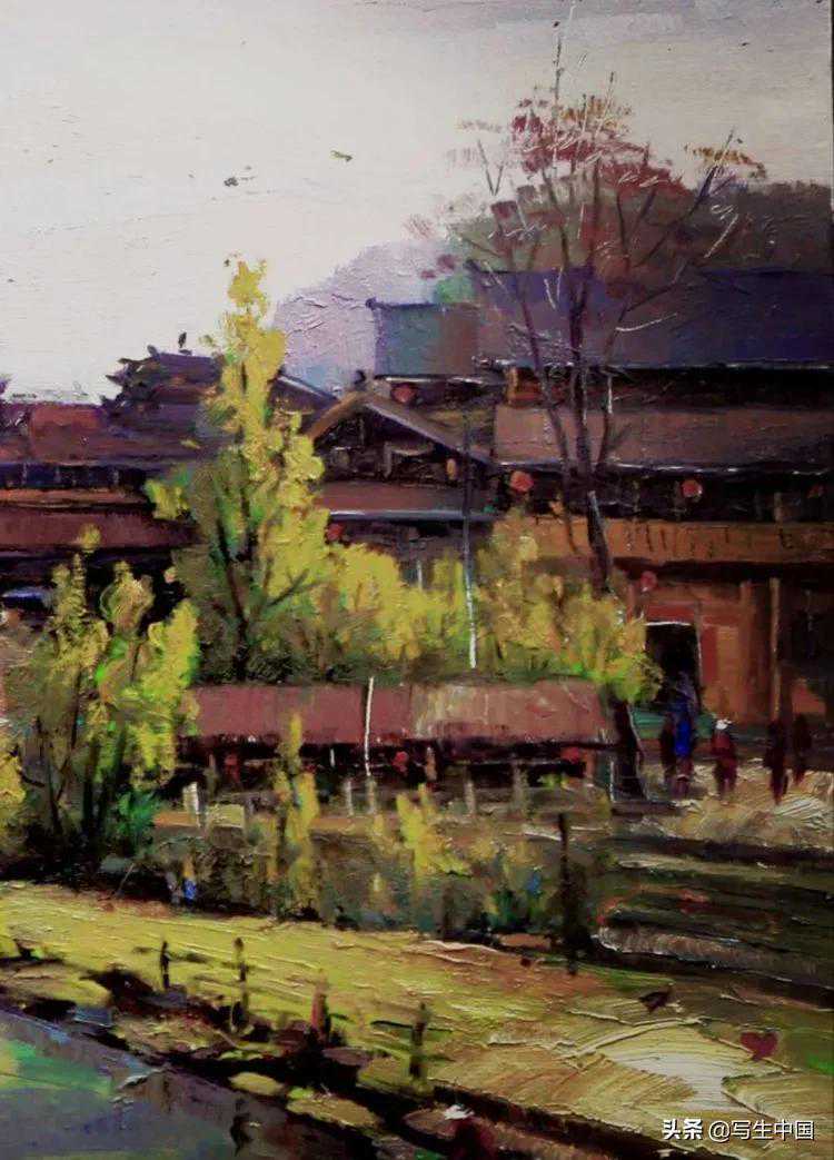 《河边的侗乡一角》油画周永红