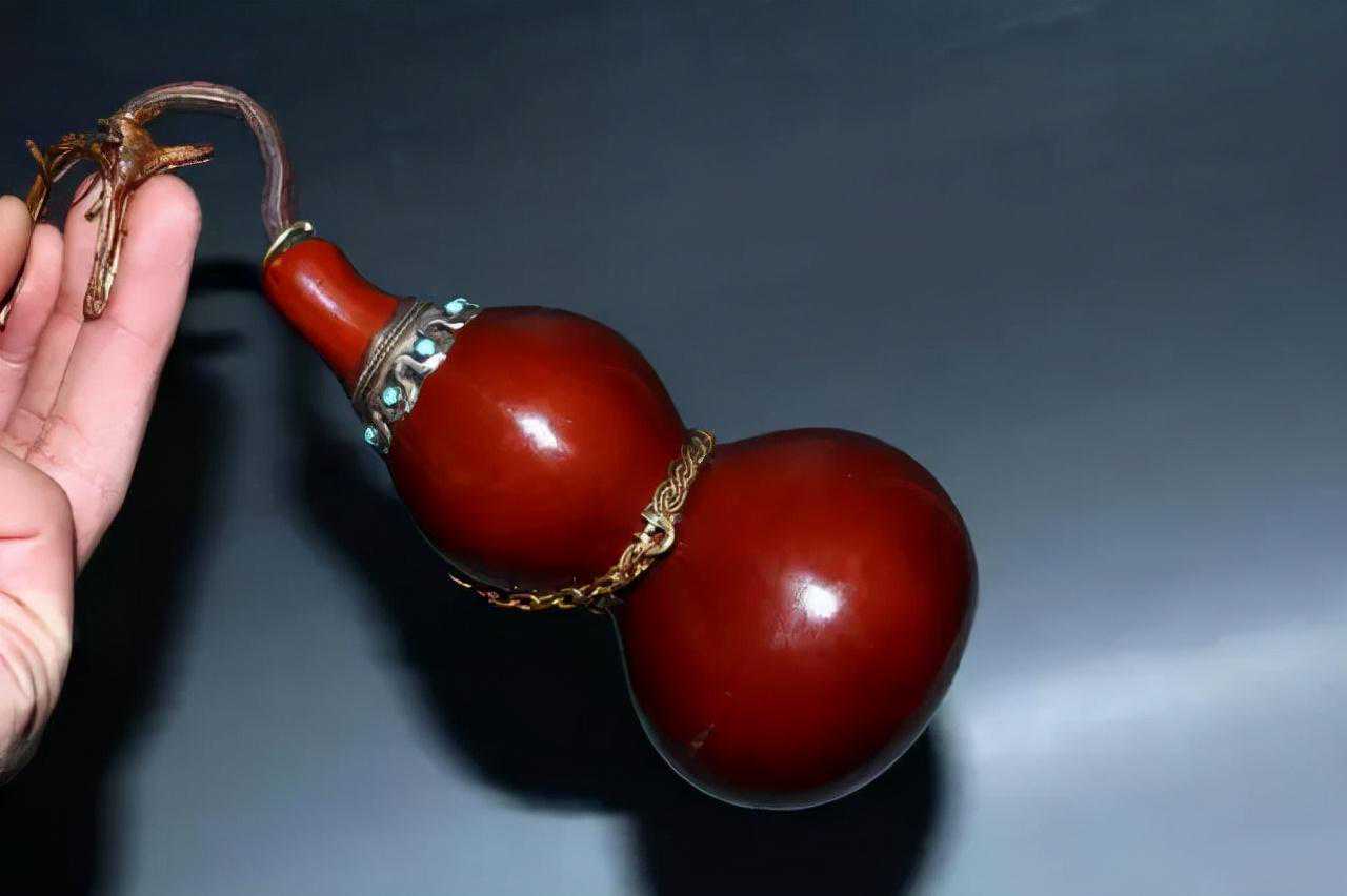 盘玩葫芦的最高境界,是使其变色至后来的紫红,深枣红色,全身发亮,就是俗话说的挂瓷儿。