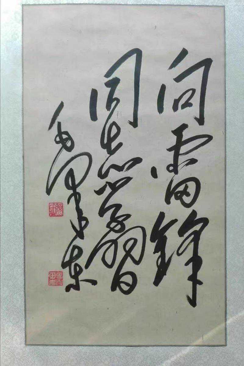 店主叫颜景玉,今年54岁,家住山东郯城农村,自幼喜欢书法,尤其是毛泽东的诗词,他耳熟能详,家里的墙上、地上都留下了他临摹苦练的字迹,见到的人都说很像,但是他不满足,在模仿中寻求突破,牢记齐白石所说:“学我者生,像我者死”这句话,练成自己的书法风格,多次参加文化系统举办的各级书法大赛,虏获殊荣。