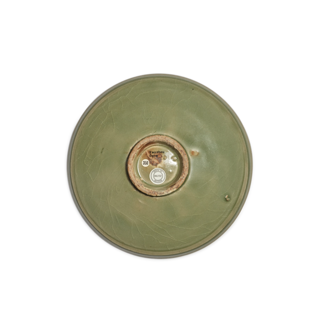 北宋/金耀州窑青釉刻莲纹盘
