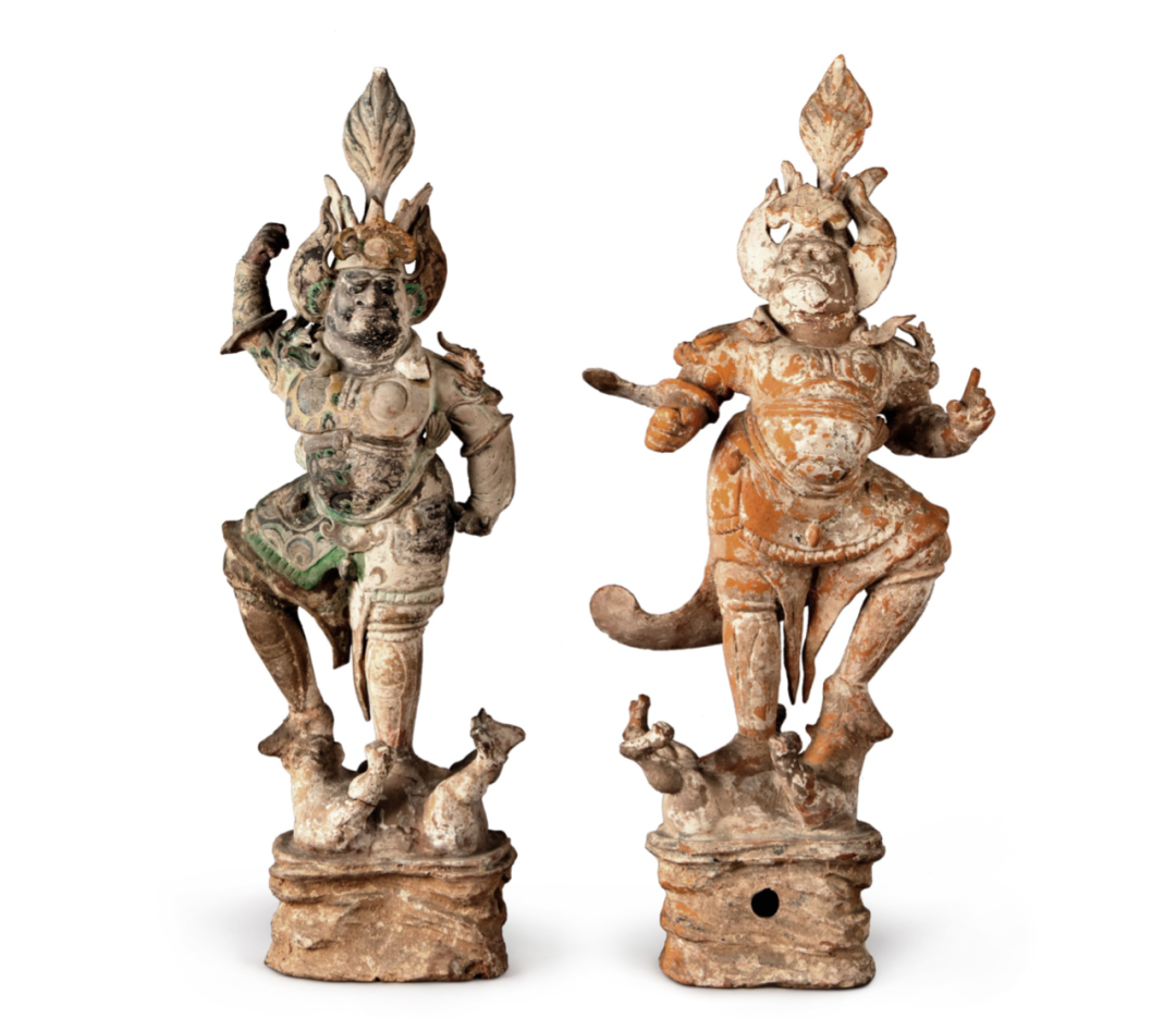 唐陶加彩天王俑两尊