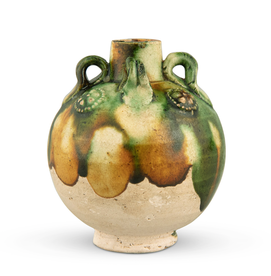 唐至辽三彩鱼纹双系壶