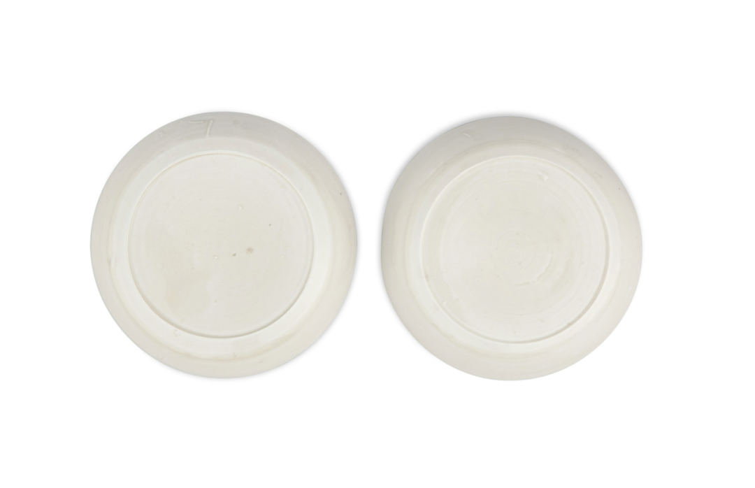 北宋定窑白釉刻莲纹盘一对