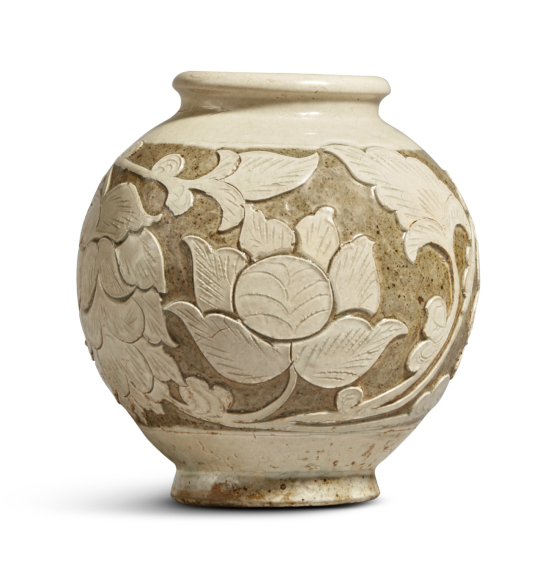 北宋定窑白釉牡丹纹执壶