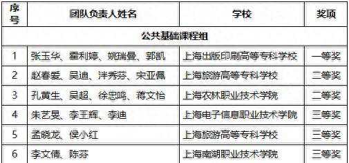 其中,上海出版印刷高等专科学校多个教师团队获奖。由张玉华、霍利婷、姚瑞曼、郭凯负责的教师团队荣获公共基础课程组一等奖;由孙佶、郑晶、朱伟、罗威彪负责的教师团队和由王红英、张静、万洁、瞿畅负责的教师团队荣获专业课程组二等奖;由邹满升、唐偲、赵佳、常方圆负责的教师团队荣获专业课程组三等奖。
