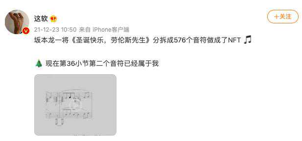 作为收藏人士,我们买到的单个音符,并不能构成一首完整的音乐作品,而买它的意义在于纪念作品、支持大师;而作为投资人士,人们无疑是明白坂本龙一的实力所在,认为这个音符NFT具有保值空间、投资潜力。