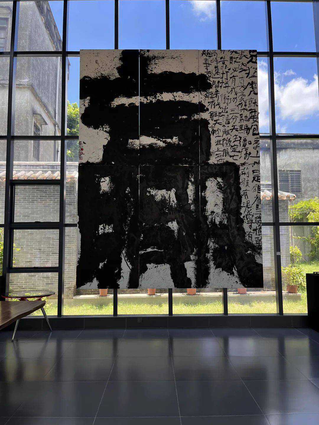 本次展览因为置入一些装置来说明破境与重拾,因为这样现场呈现可能就富有了当代性,这也是策展者想要表述和宣扬的理念,即拓展中国传统书画的新认知,创新不是打破而是向传统致敬,探索不是颠覆而是向先学更好的继承,所以策展者设置了一面主题墙由大厅穿厅而出,直到广场,这种破是让观众直观的感受到破的力量,产生思考。看上去虽然突兀但很真实,这样自然就达到了本次展览我们想要表达的信息。
