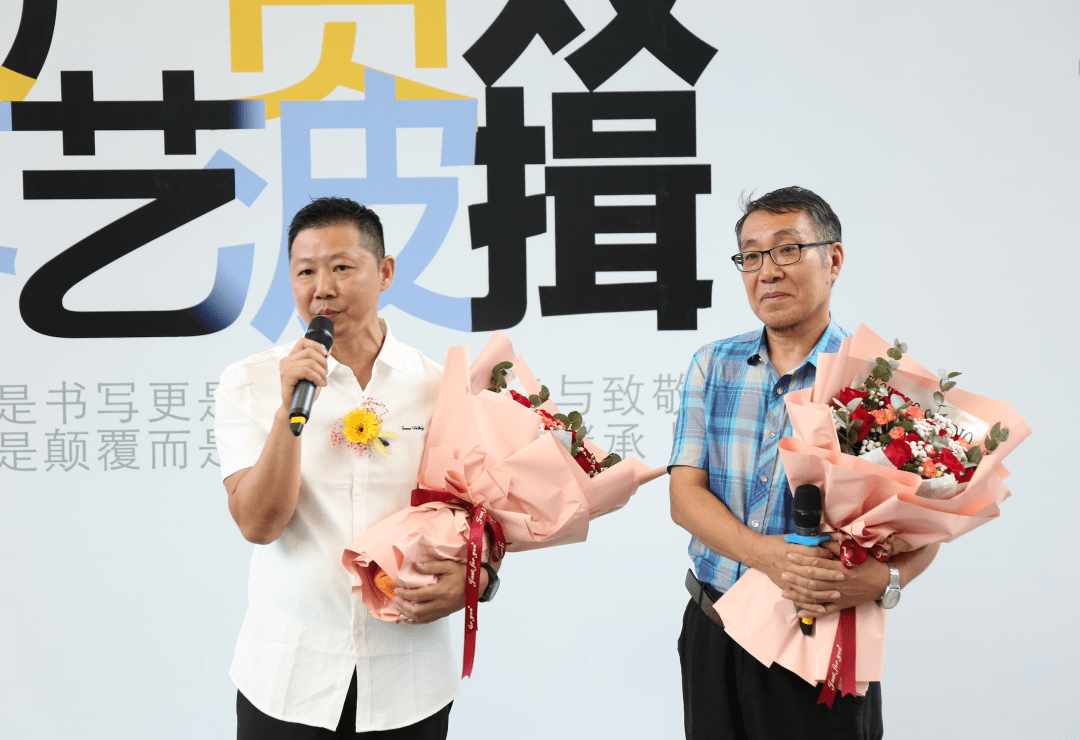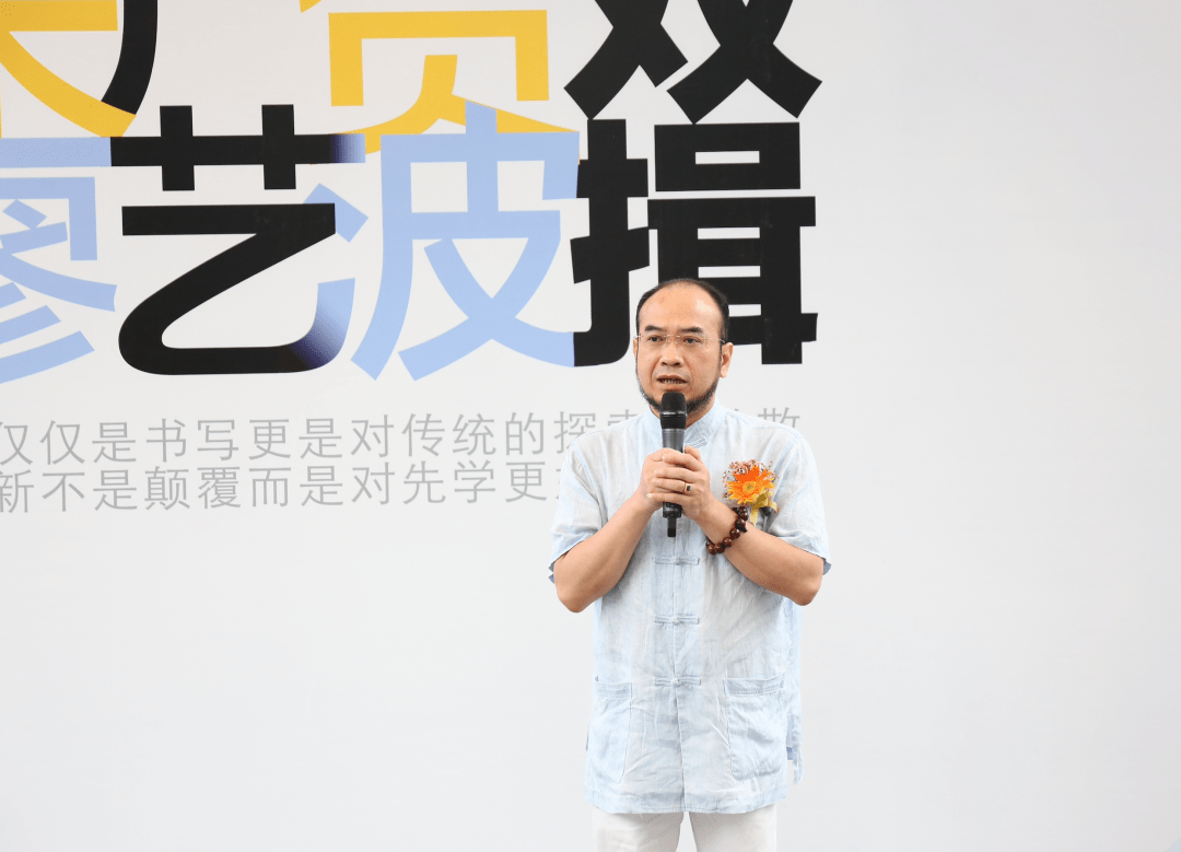 靳继君教授:很感动很震撼,首先对二位经心创作的作品能在黄连艺术村这个艺术殿堂内展出表示祝贺。可以看出今天来到现场的朋友都是抱着对两位书家作品真心诚意的认可。广贺彪悍的印风和他内敛的性情既是暗流涌动又是一种暗流的力量,非常强大。而艺波兄张扬的书风就像台风暴雨一样有迅雷不及掩耳之势,这也是一种力量的传递和表达,一个是通过外在的这种张力呈现阳光伟岸之气,是暗流涌动当中金石为开的坚定信念。看了他们的作品我想这样的作品就放在中国美术馆展览也是不逊色的!所以说岭南是出人才的地方,同时也衷心的希望两位艺术家书艺精进宏图大展,在黄连艺术村这个平台起飞,走向更大的舞台,为他们鼓掌。