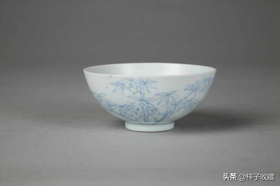 清雍正款淡描青花竹纹瓷碗