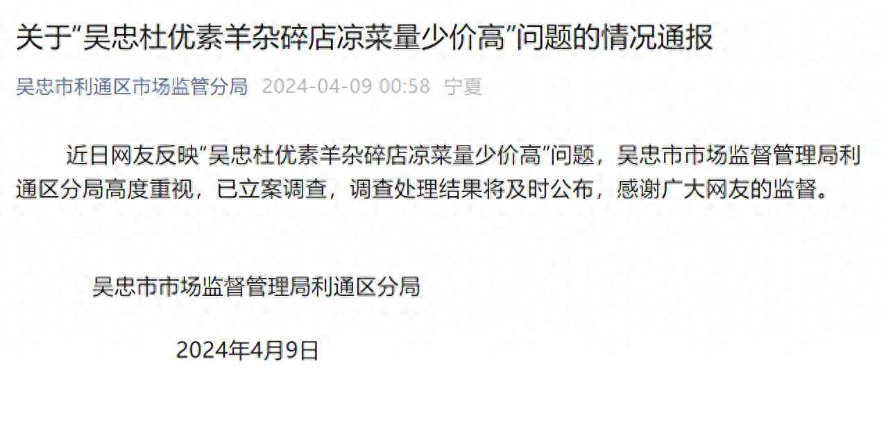最后,希望吴忠市的市场监管部门能够尽快查清事实真相,公正处理此事,并向广大消费者公布调查结果。同时,也希望各位消费者能够以更加理性的态度对待消费,保护自己的合法权益,共同营造一个公平、和谐的消费环境。