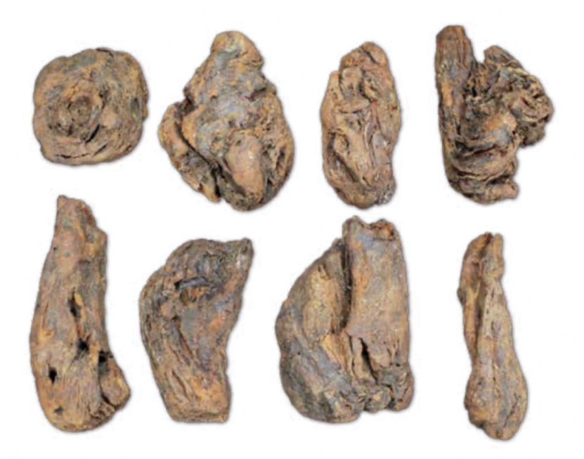 这是在浙江省余姚市河姆渡文化田螺山遗址中发现的人工种植茶树根,通过对树根所在地层年代的碳14测定和同时期出土陶盉(与茶相关的水器)的形态特征确定:早在约6000年前,中国人就已经开始人工种植茶树。