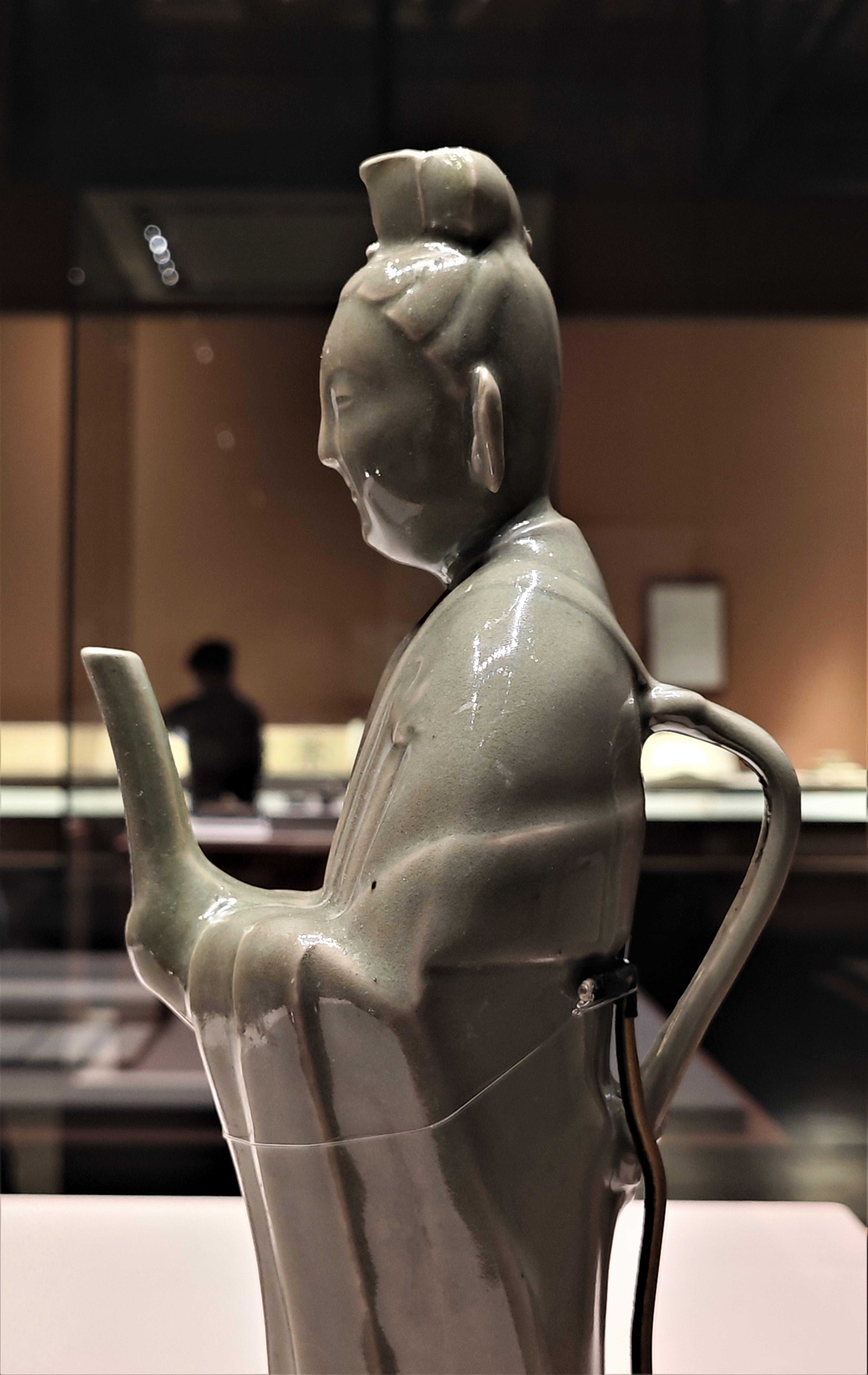 龙泉窑青釉陆羽像执壶(侧面)