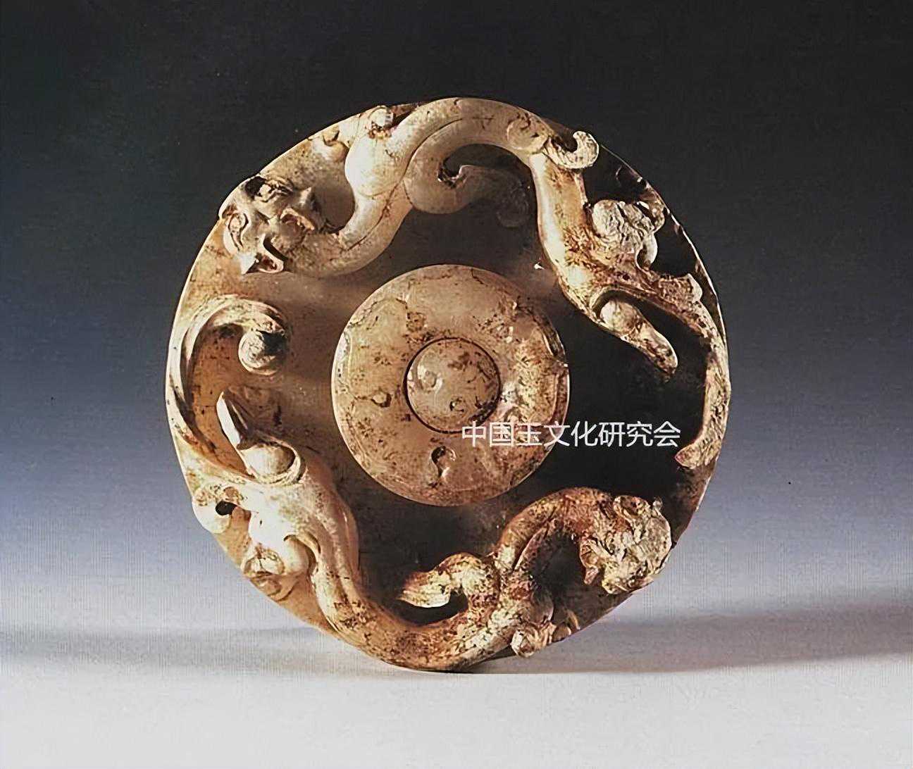 民间流行的璧不少琢有螭龙纹,战国时的璧出现了螭的造型,两汉更加盛行,汉螭在形态上呈立体或半立体状,正面或俯视正面做匐伏潜行状,四肢如虎,脑后无角或独角,尾为钮丝多分叉,多见于玉璧。