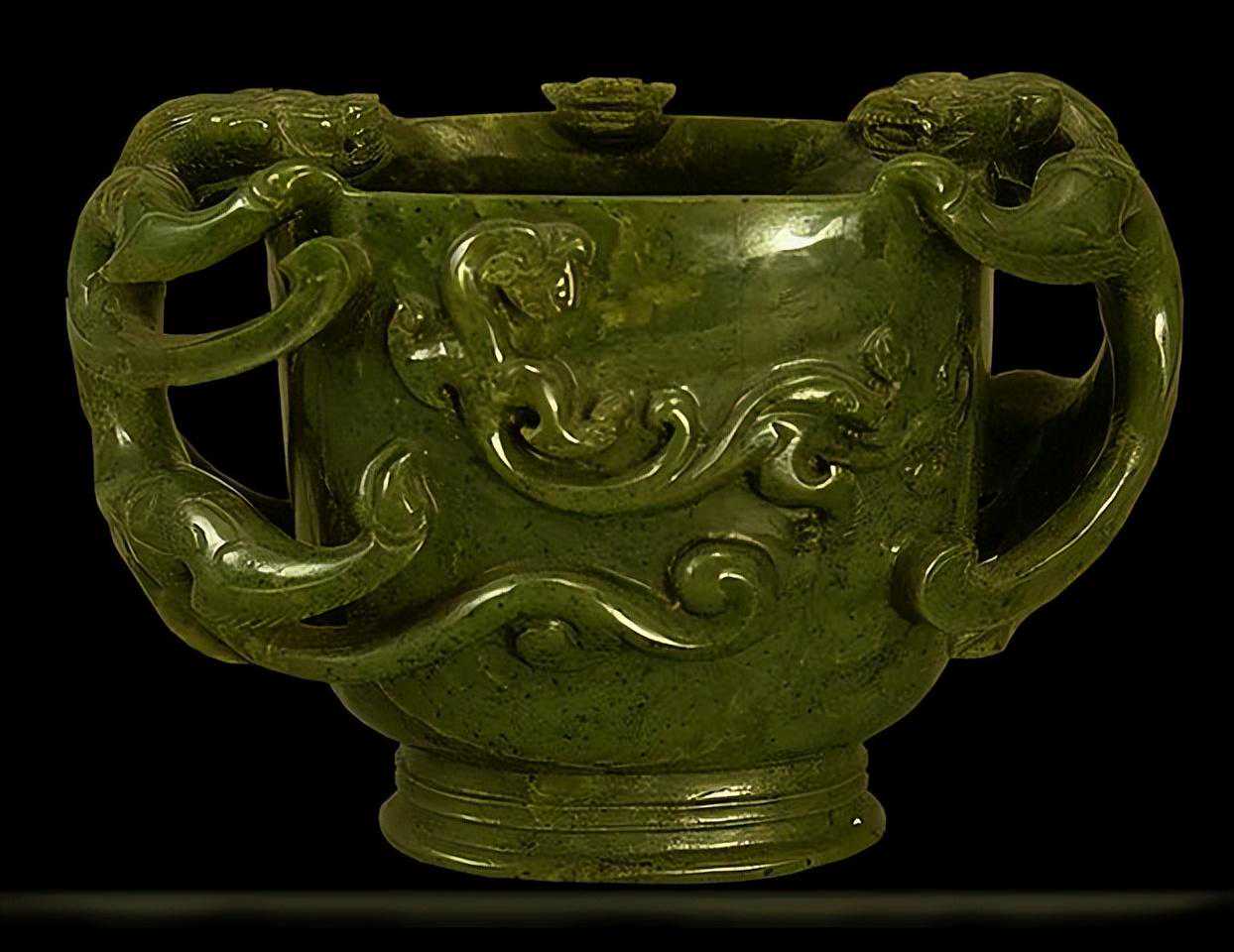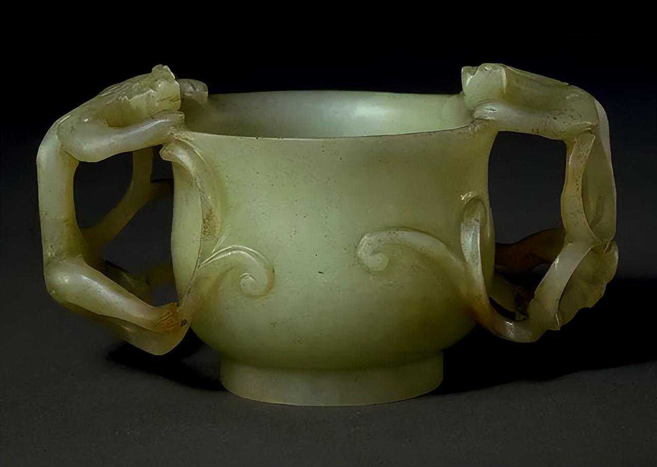 明代青玉双螭耳玉杯