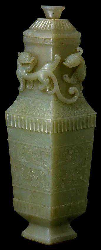 清中期和田玉蟠螭纹斜方瓶