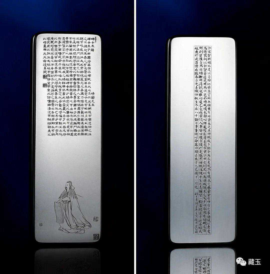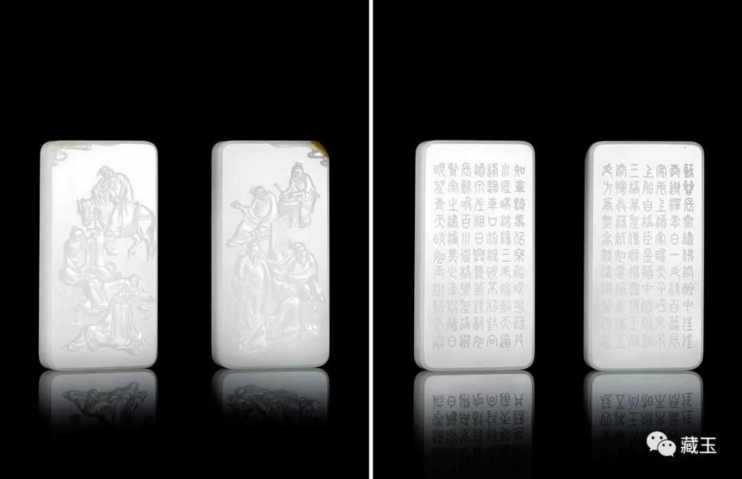 这是一件墨玉牌,块度挺大,重324g,比其他白玉牌要重两三倍,成交价36.8万。好工艺大大提升了这件玉牌的价值。