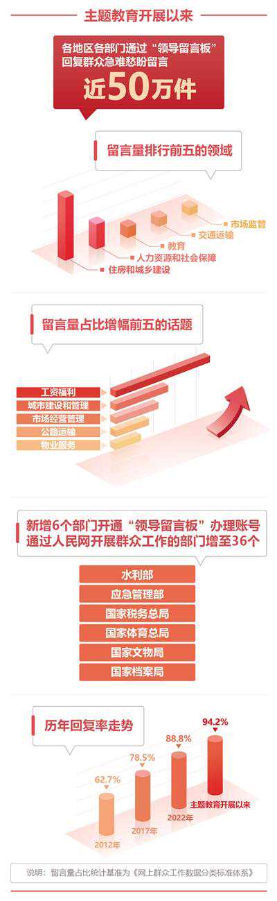 主题教育开展以来,各地区各部门通过人民网“领导留言板”已回应和解决近50万件群众诉求