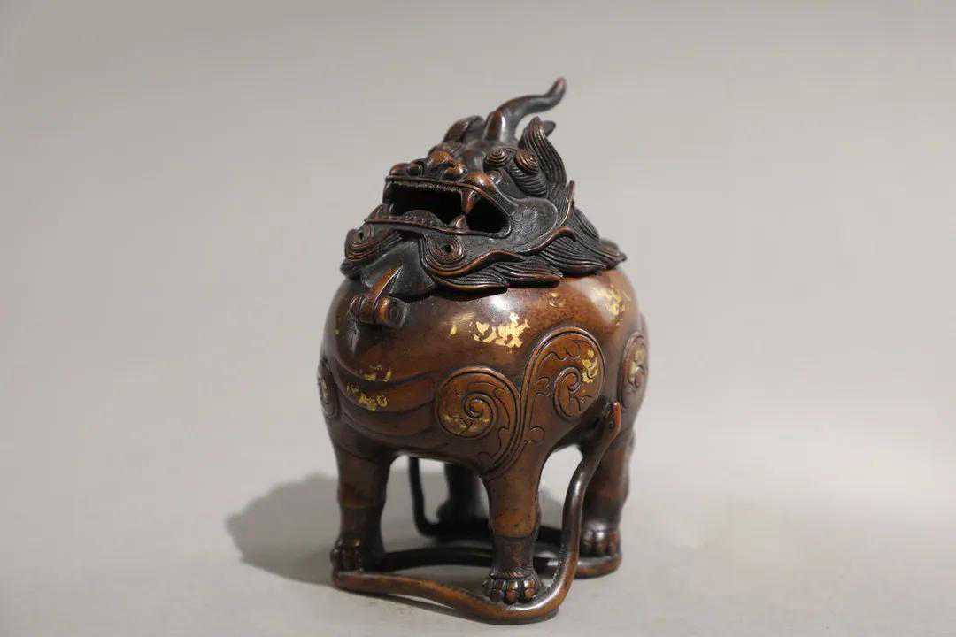 明精铸铜胎点金洒金甪端瑞兽香熏炉